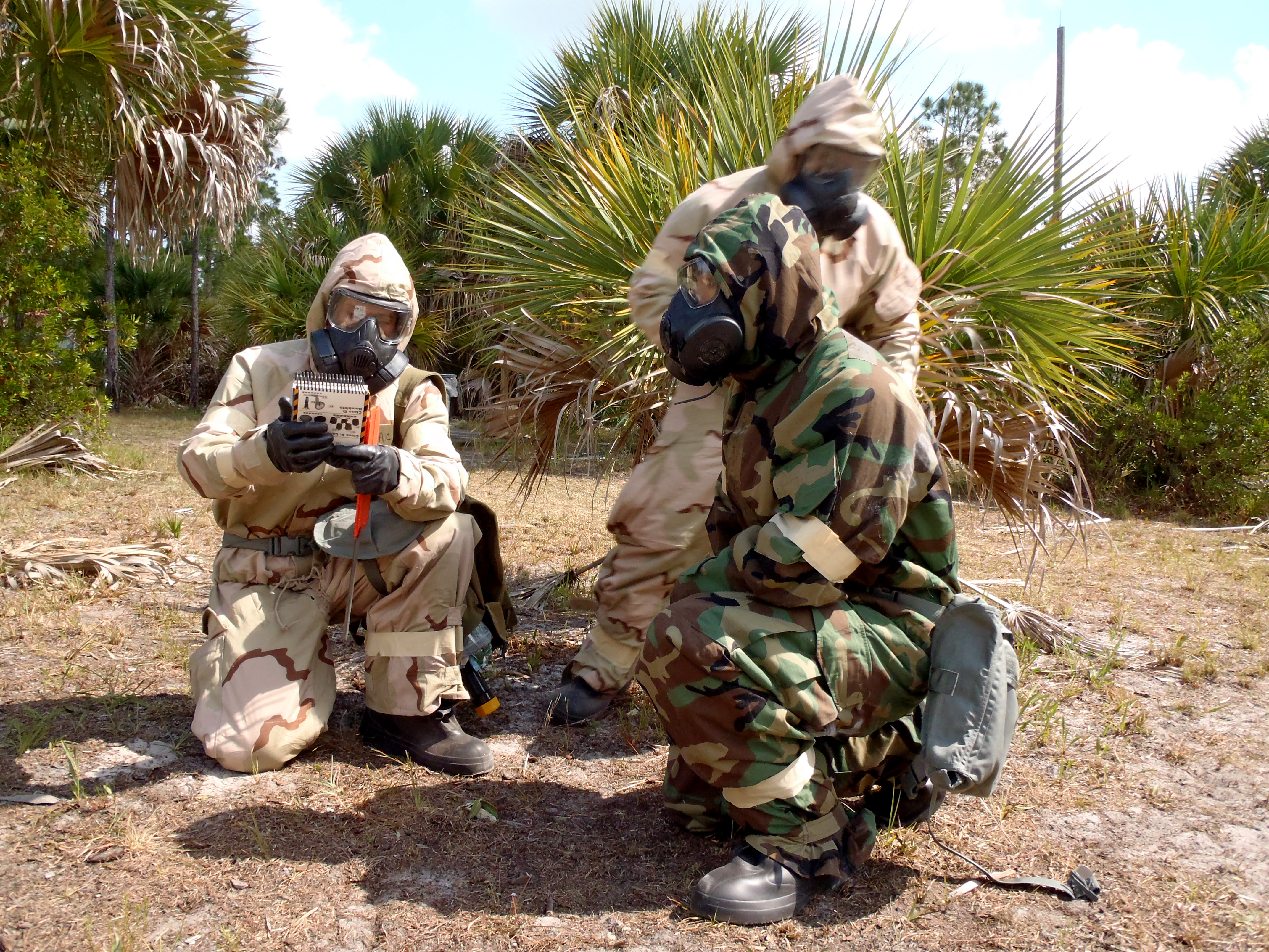 U.S. AIR FORCE MALABAR TRANSMITTER ANNEX, Fla. - Reservists from the 920th Rescue Wing Mission Support Group activated the Post Attack Reconnaissance teams, PAR, to sweep the area for unexploded ordnances during a field training exercise at the U.S. Air Force Malabar Transmitter Annex Sunday May 8th. These teams carefully searched for these dangerous pieces of equipment and quarantined anything suspicious - following the same procedures as they would in a real-world event. This two-day field training was to simulate a working deployment with make-shift shelters, chemical gear, unexploded ordinance detection, hostage situations and field cooking. (U.S. Air Force photo/Staff Sgt. Leslie Forshaw)