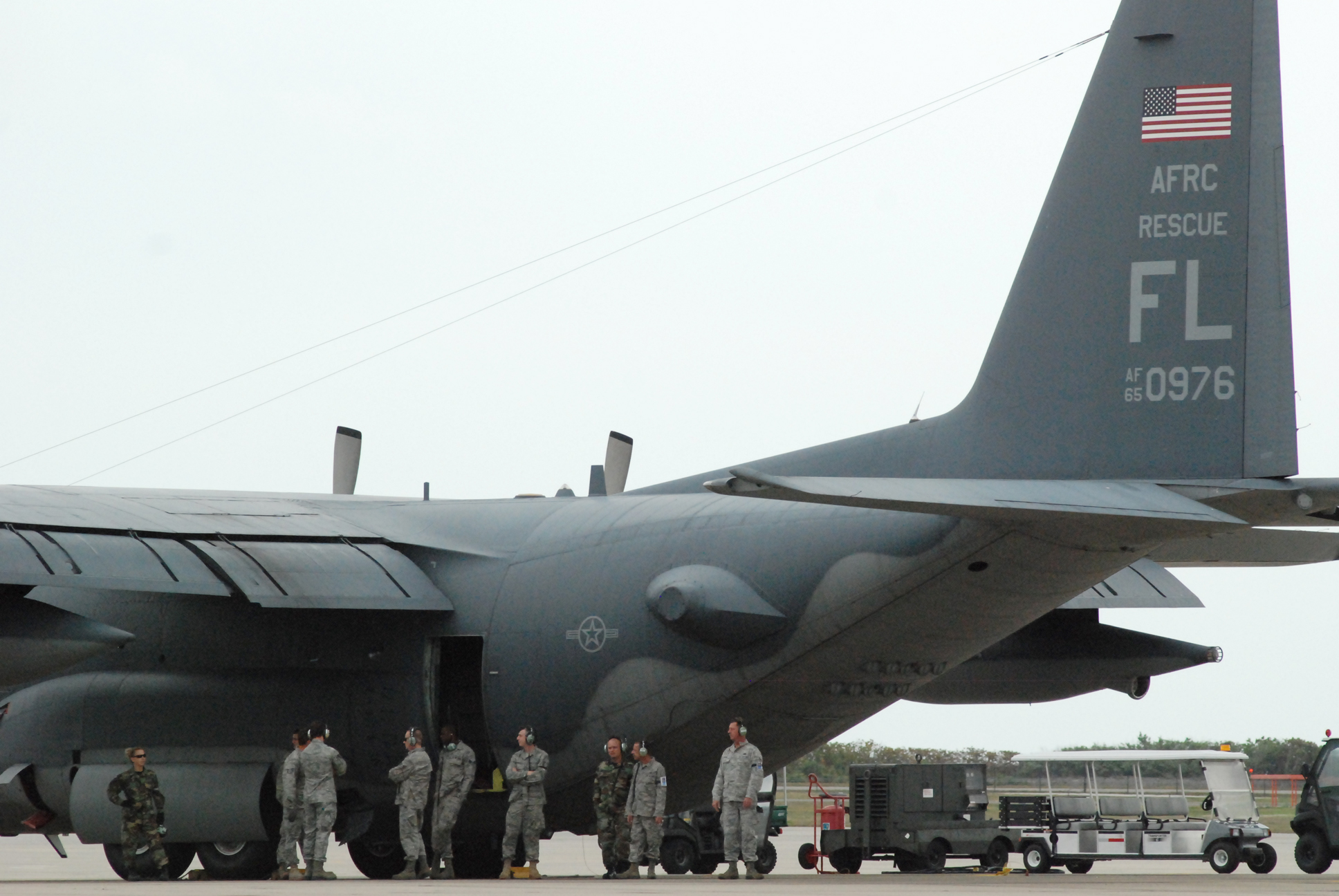 PATRICK AIR FORCE BASE, Fla. - Maintenance Airmen from Air Force Reserve's 920th Rescue Wing here prepare this HC-130 King aircraft for flight as they stepped up to the challenge from their commander, Col. Robert Dunn, who had them launch the wing's entire fleet of two different weapons systems: six HH-60G Pave Hawks and three Kings, March 6 during their drill training weekend. (U.S. Air Force photo/Airman Natasha Dowridge)